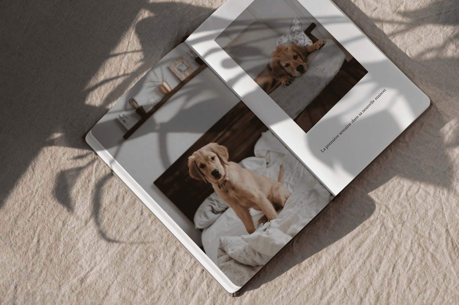 Ne laissez pas les plus beaux moments passés avec vos animaux se perdre dans vos appareils ou vos téléphones. Créez dès aujourd’hui un album photo personnalisé qui leur est dédié, du premier jour à la maison aux instants de complicité partagés chaque jour.