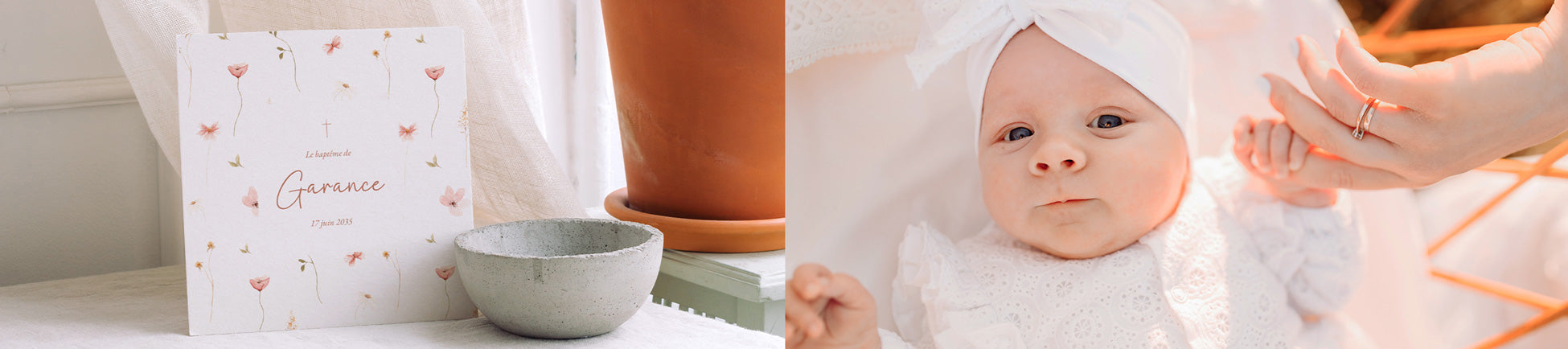 Découvrez un large choix de cartes 100% personnalisables pour organiser son baptême: faire-part, cartes de remerciements, livrets de messe, menus, boîtes à dragées et étiquettes personnalisées !