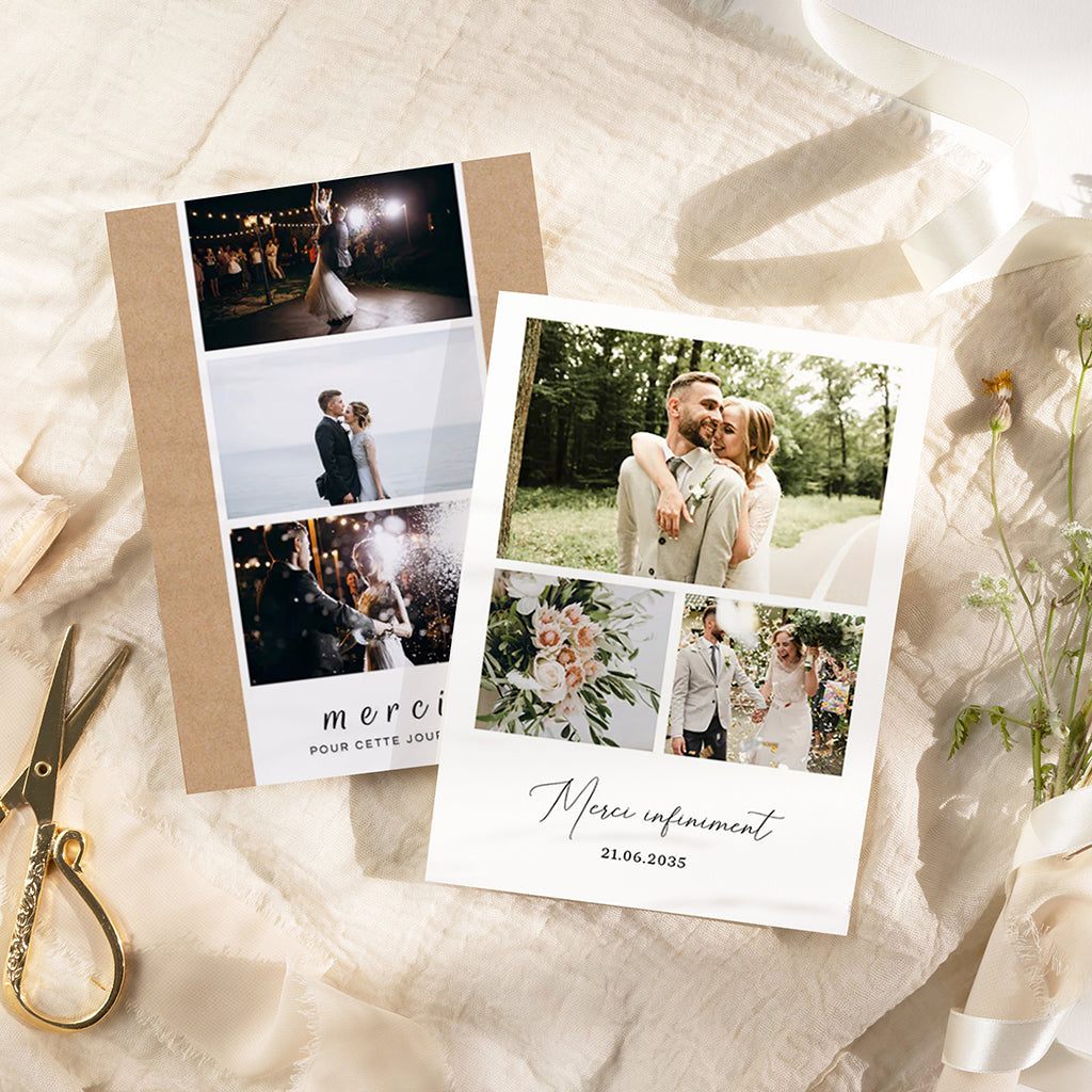 Choisissez l'un de nos modèles de carte de remerciement mariage unique en son genre ! Pour un "merci" qui surprend, fait plaisir et ne ressemble pas aux autres.