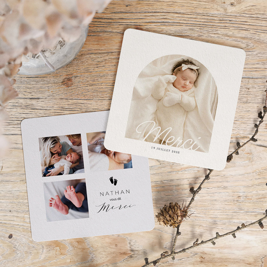 Vous cherchez une carte sobre et élégante pour remercier votre entourage ? Dans ce cas, nos cartes de remerciement de naissance classiques sont faites pour vous.
