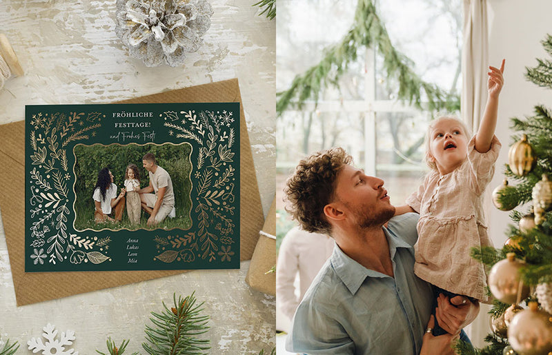 - Weihnachtskarten bestellen: Ordern Sie am besten einige Exemplare mehr, als Sie tatsächlich benötigen. Beim Personalisieren der Weihnachtskarten passieren leicht kleine Fehler, die das Gesamtbild beeinträchtigen. Mit einer Reserve können Sie solche Karten noch einmal schreiben.