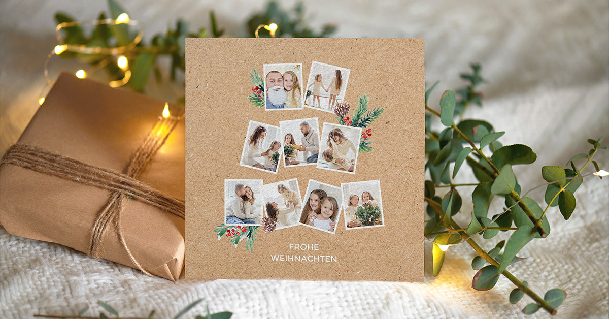 Hierfür stehen Ihnen zahlreiche Möglichkeiten der Personalisierung zur Verfügung, wie z. B. die Wahl des Textes und der Farben, die Gestaltung der Fotos, das Design der Weihnachtskarte oder auch das Format: