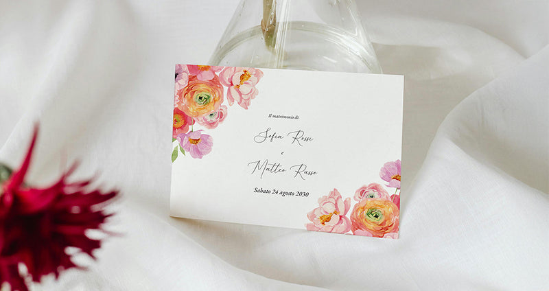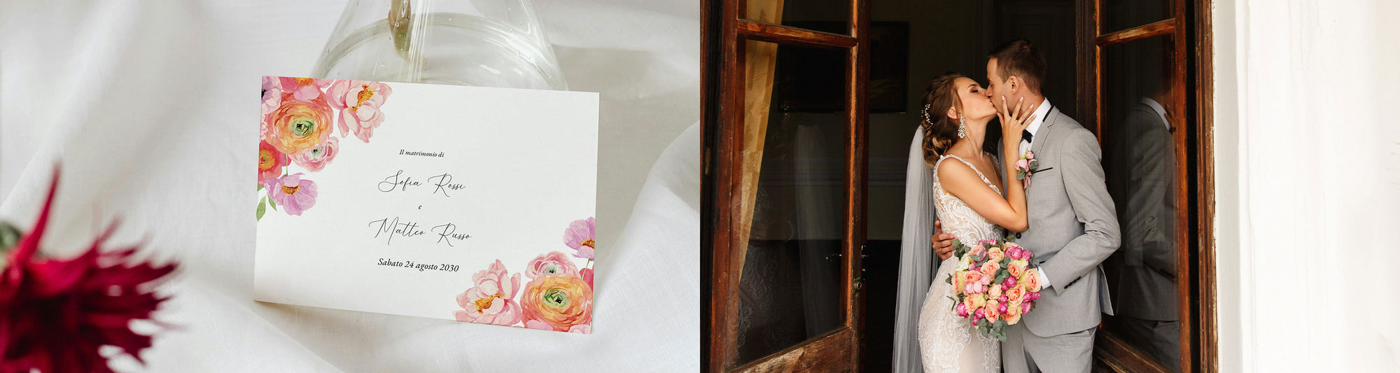 Scegliendo di abbinare il tema del matrimonio a tutte le carte, i futuri sposi non commettono errori di gusto. Si ottiene così una riuscita armonia tra i dettagli della cerimonia e i colori, apportando un tocco di eleganza unico. Approfitta delle promozioni offerte durante tutto l'anno per ordinare le tue partecipazioni di nozze su Planet Cards.