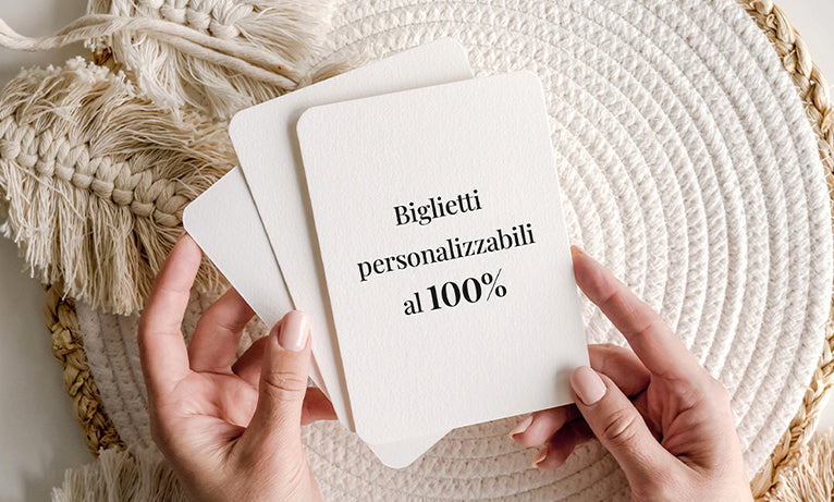Il nostro intuitivo strumento di personalizzazione ti consente di scegliere tra una moltitudine di opzioni: carte raffinate, finiture delicate, tipografia ordinata e layout armonioso. Che si opti per un design elegante o più sofisticato, le nostre creazioni si adattano a tutti i gusti e a tutte le tasche.