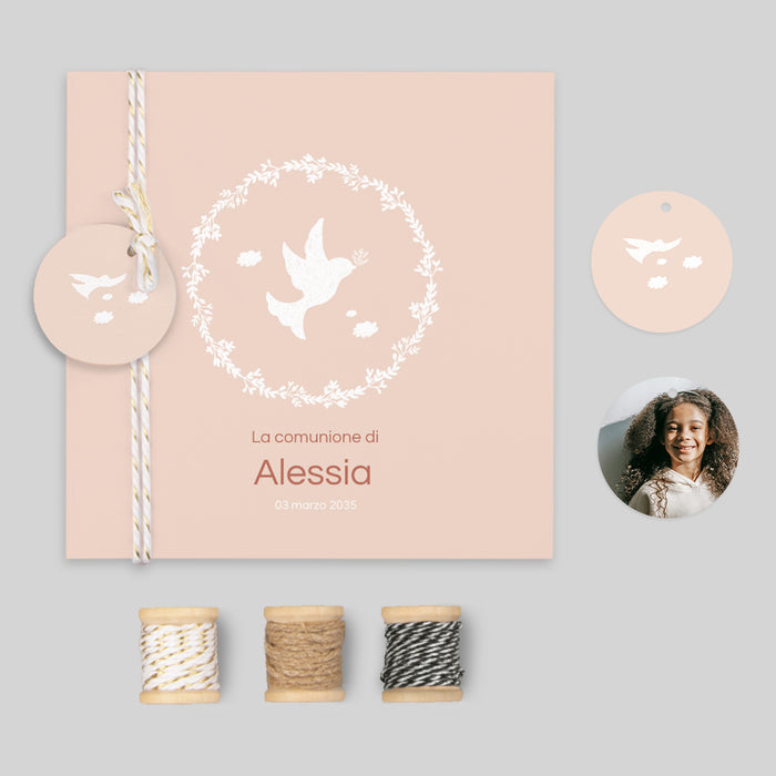 Inviti Comunione Corona di verdure e colombe dolci Ragazza