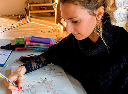 Depuis son bureau qui domine la campagne, elle observe les animaux, les plantes, le changement des saisons, et y puise sa créativité.
